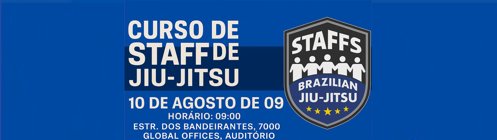 O Curso de Formação de Staff para Eventos de Jiu-Jitsu tem como objetivo capacitar profissionais e voluntários para atuarem de forma eficiente na organização e execução de competições. O conteúdo abordará desde os princípios básicos da organização até a atuação prática em funções como arbitragem auxiliar, controle de área, mesa central e suporte aos atletas.